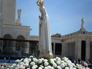 Chegamos mesmo na hora para a missa, Fátima estava repleta de pessoas, esqueci- me o do carrinho da Mariana em casa dos sogros, mas não houve crise ela andou ao colo e a pé.